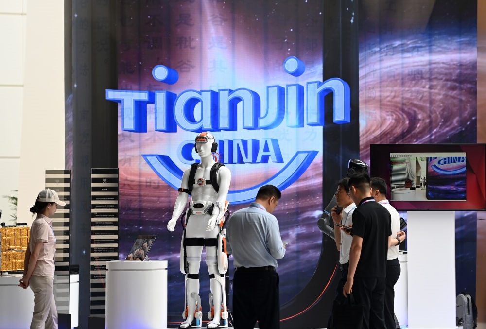 6月25日,在國家會(huì)展中心(天津),嘉賓在天津展區(qū)參觀。新華社記者 趙子碩 攝