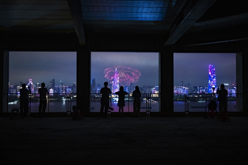 9月12日,市民觀看無(wú)人機(jī)表演。