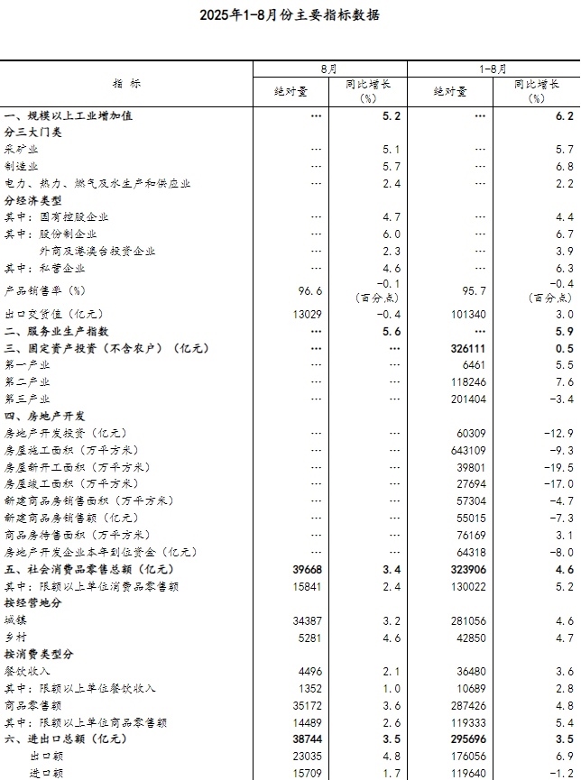 8月份國民經(jīng)濟(jì)運(yùn)行總體平穩(wěn)、穩(wěn)中有進(jìn)