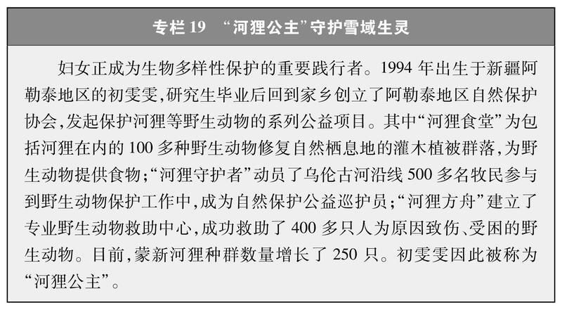 推動生態(tài)系統(tǒng)保護修復(fù)。統(tǒng)籌推進山水林田湖草沙一體化保護和系統(tǒng)治理,著力構(gòu)建從山頂?shù)胶Q蟮谋Wo治理大格局。廣大婦女積極投身生態(tài)系統(tǒng)保護修復(fù),在19.07萬平方公里的三江源國家公園,有1.7萬余名生態(tài)管護員日夜堅守,其中婦女占33.3%;海南昌江黎族自治縣的“植樹娘子軍”,30余年持續(xù)摸索反復(fù)試驗,在荒漠中種出了3萬多畝近600萬株海防林;陜西女子民兵治沙連50多年治理了1.4萬畝荒漠地區(qū),使昔日寸草不生、人跡罕至的荒漠變成了“林成網(wǎng)、樹成行”的大漠綠洲;寧夏賀蘭縣“紅馬甲”巾幗志愿服務(wù)隊常年開展護河護灘護鳥行動;江蘇南京市持續(xù)開展“長江大保護”巾幗行動。在增綠護林、防沙治沙、江河保護、生物多樣性保護等各方面都展現(xiàn)著婦女的堅韌與智慧。