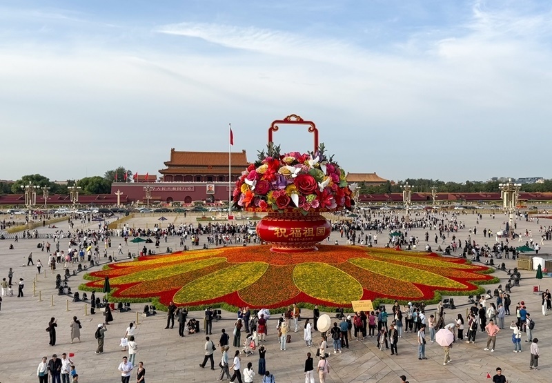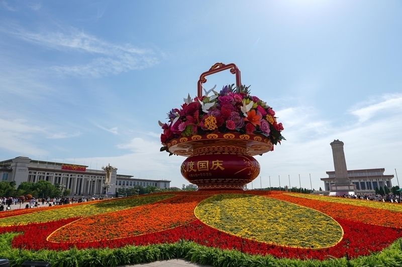 9月25日在天安門廣場拍攝的“祝福祖國”大花籃。