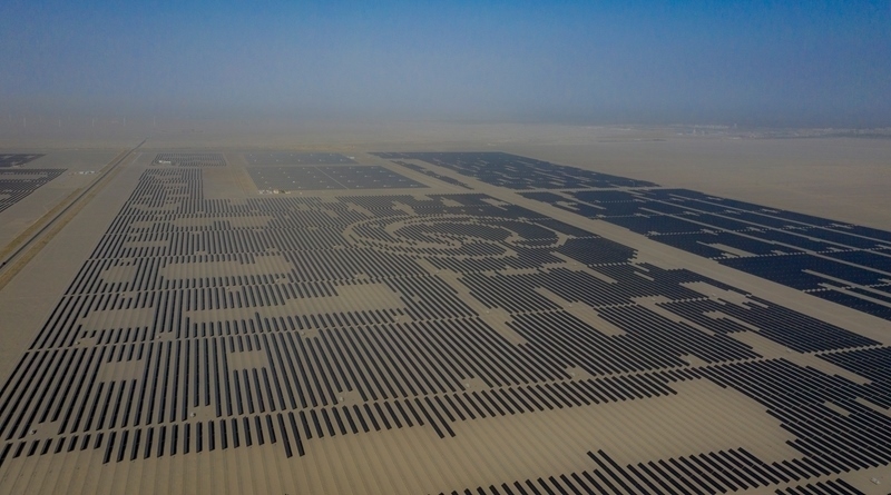 昔日的戈壁荒漠,如今由太陽能光伏板匯聚成“藍(lán)色海洋”,由風(fēng)力發(fā)電機(jī)組成“白色森林”,正孕育著無限“風(fēng)光”。