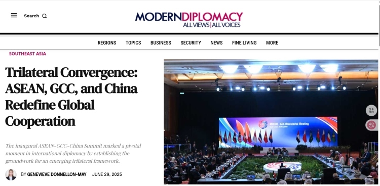 6月29日,歐洲《現(xiàn)代外交》網(wǎng)站刊發(fā)評(píng)論文章《三方協(xié)同:東盟、海合會(huì)與中國(guó)重新定義全球合作》。文章從不久前圓滿閉幕的首屆東盟—中國(guó)—海合會(huì)峰會(huì)出發(fā),指出東盟、海合會(huì)與中國(guó)之間的三方合作對(duì)推動(dòng)世界多極化、促進(jìn)全球南方國(guó)家發(fā)展具有重要意義,中國(guó)作為負(fù)責(zé)任大國(guó)在全球治理中發(fā)揮了關(guān)鍵領(lǐng)導(dǎo)作用。