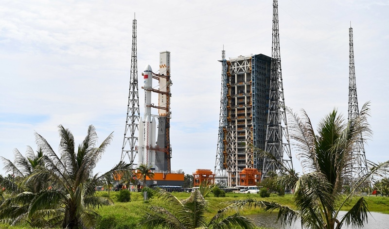7月12日,天舟九號貨運飛船與長征七號遙十運載火箭組合體垂直轉(zhuǎn)運中。