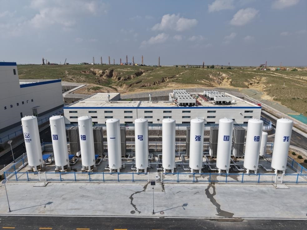 圖為“國鈾一號”示范工程地浸鈾礦山氧氣和二氧化碳?xì)怏w罐。(中核集團(tuán)供圖)
