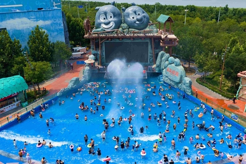7月12日,人們在天津?yàn)I海新區(qū)方特水上樂園戲水納涼。