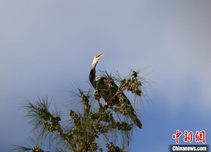 薛美麗認為,“稀客”黑腹蛇鵜的到來,是對濕地公園近年來生態(tài)環(huán)境保護、生態(tài)修復工作成效的間接肯定。