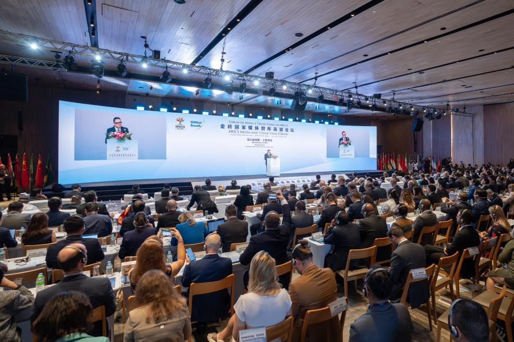 金磚國家媒體智庫高端論壇當(dāng)?shù)貢r(shí)間16日在巴西里約熱內(nèi)盧舉行。來自包括金磚成員國及伙伴國在內(nèi)的36個(gè)國家近150家媒體、智庫、政府機(jī)構(gòu)和企業(yè)以及中美洲議會等地區(qū)組織的250余名代表出席論壇,共話金磚國家媒體智庫在世界變局中的責(zé)任與擔(dān)當(dāng)。