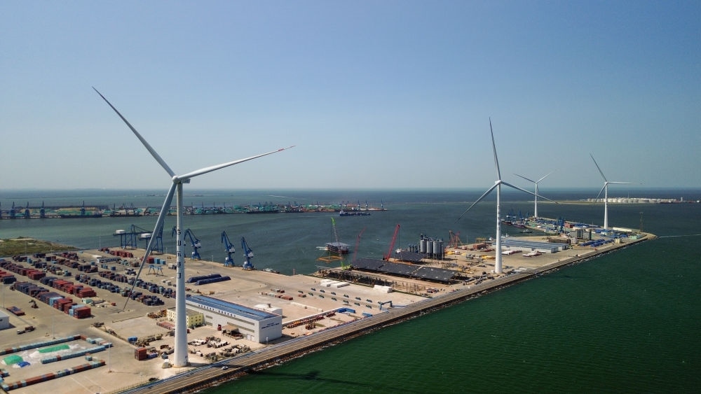 “4臺風力發(fā)電機一年可發(fā)電約7000萬千瓦時,足以覆蓋碼頭設備及??看暗挠秒娦枨?,冗余電量還能上網(wǎng)銷售?!鄙綎|省港口集團濰坊港有限公司黨支部書記、總經(jīng)理孫超說,濰坊港已形成風、光、氫“多能互補”的用能結(jié)構(gòu),每年可節(jié)省標煤2.1萬噸,減少二氧化碳排放5.7萬噸。