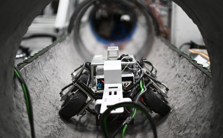 這是在深圳的廣東省具身智能機(jī)器人創(chuàng)新中心拍攝的管道檢測機(jī)器人(2025年6月25日攝)。新華社記者 鄧華 攝