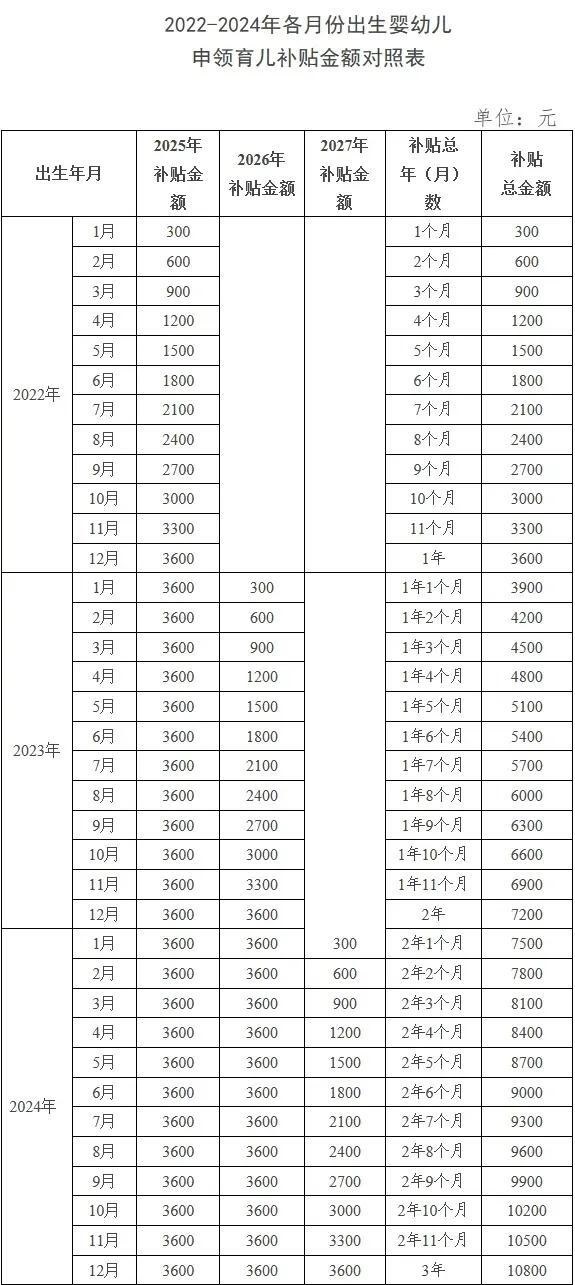 其中,對2025年1月1日之前出生、不滿3周歲的嬰幼兒,按應(yīng)補(bǔ)貼月數(shù)折算計發(fā)補(bǔ)貼。也就是說,2022年1月1日以后出生的符合條件的嬰幼兒,都可以領(lǐng)取育兒補(bǔ)貼。