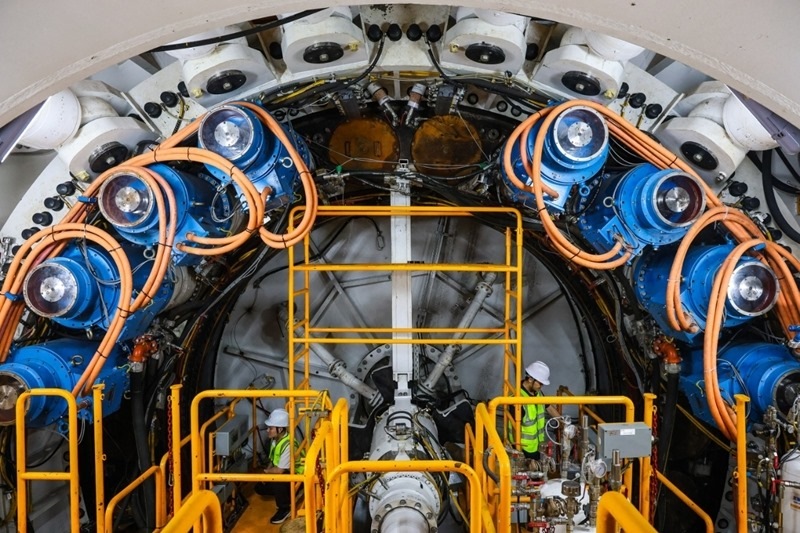 該盾構(gòu)機(jī)開(kāi)挖直徑14.34米,掘進(jìn)長(zhǎng)度3850.6米,最大埋深62.5米,為單洞雙線(xiàn)隧道。