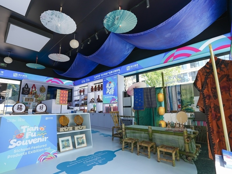 這是8月3日在成都世運(yùn)會(huì)運(yùn)動(dòng)員村A區(qū)拍攝的四川特色產(chǎn)品展示展銷(xiāo)館。