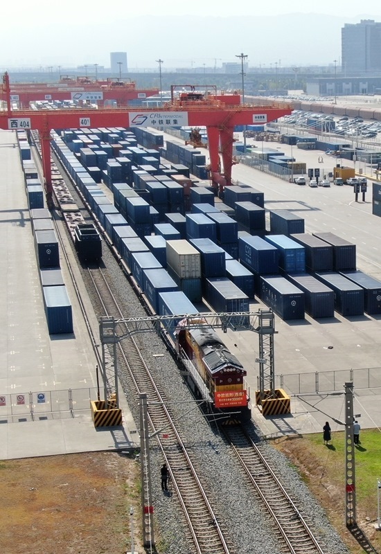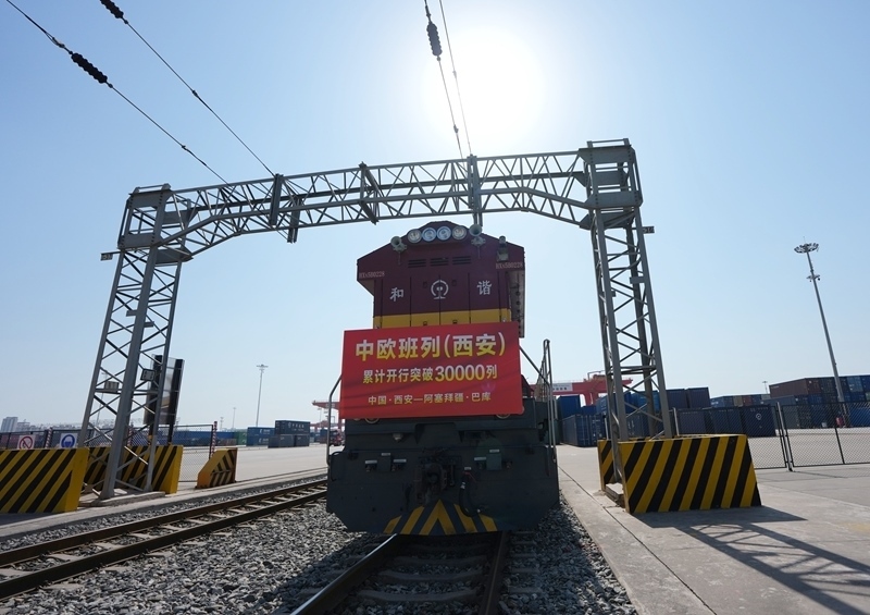 當(dāng)日上午,滿載著55個集裝箱光伏組件的X9043次中歐班列從西安國際港站駛出,開往阿塞拜疆巴庫,標(biāo)志著中歐班列(西安)自2013年開行首列以來累計開行突破30000列,開行總量超過全國中歐班列累計開行總量的四分之一。西安國際港站也成為了全國首個中歐班列開行量突破30000列的車站,開行量、貨運量、重箱率等核心指標(biāo)位居全國第一。