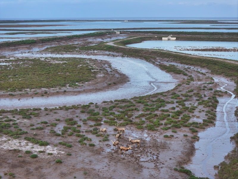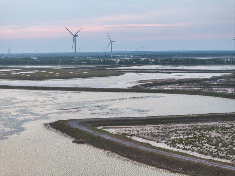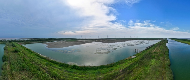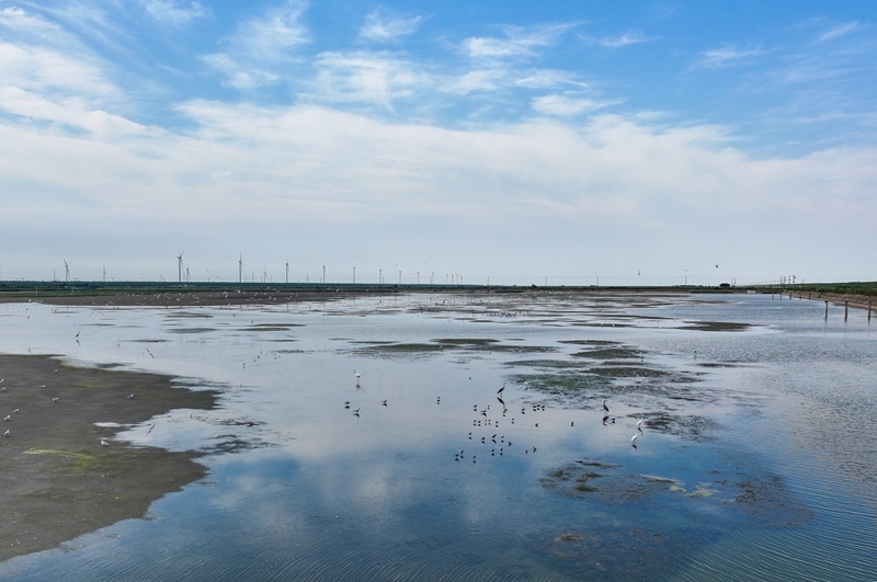 江蘇省鹽城市東臺(tái)市條子泥濕地區(qū)域總面積129萬畝。2019年,作為中國黃(渤)海候鳥棲息地(第一期)重要組成部分被列入世界遺產(chǎn)名錄。近年來,條子泥濕地秉承“基于自然的解決方案”理念,開展了川水灣海岸帶生態(tài)保護(hù)項(xiàng)目,并在東臺(tái)海堤西側(cè)專門辟出720畝魚塘,打造了國內(nèi)第一塊固定高潮位棲息地。生態(tài)保護(hù)修復(fù)工程的實(shí)施使條子泥一些珍稀物種種群數(shù)量屢創(chuàng)新高,大批的水鳥、成群的麋鹿等野生動(dòng)物在此“落戶”,濕地修復(fù)初顯成效。