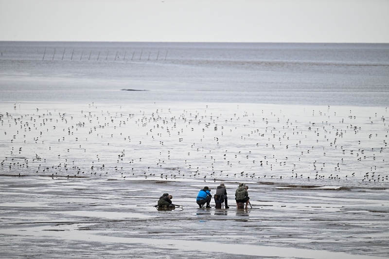 8月25日,攝影愛好者、鳥類保護(hù)者在東臺(tái)條子泥濕地拍攝觀測鳥類。