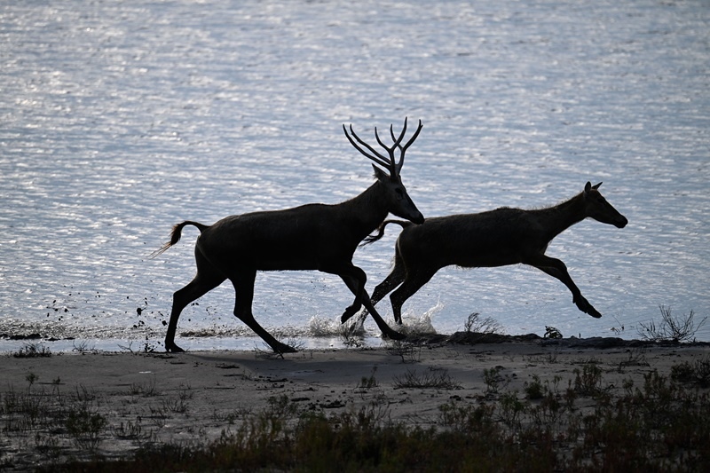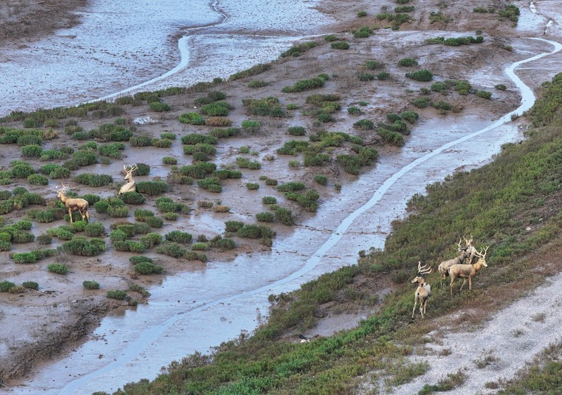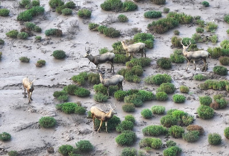 8月25日,野生麋鹿棲息在川水灣(無人機(jī)照片)。