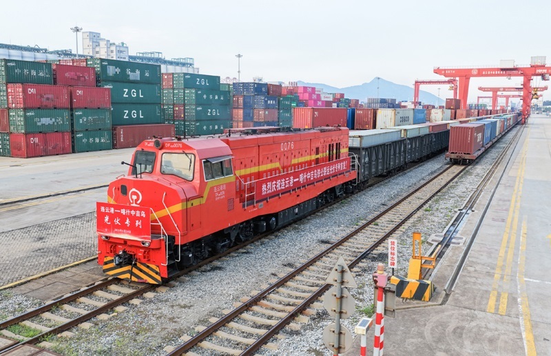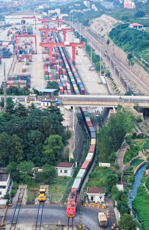 8月29日,在位于江蘇連云港市的中哈(連云港)物流合作基地,滿載50個集裝箱的光伏專列發(fā)車,這是中哈(連云港)物流合作基地開行的首列光伏專列。該趟列車抵達(dá)喀什北站后,貨物再通過汽車運抵烏茲別克斯坦,與傳統(tǒng)的全鐵路運輸相比,這種鐵公聯(lián)運方式可有效縮短運輸距離,并發(fā)揮鐵路運輸?shù)拈L距離、大運量和公路運輸?shù)撵`活性特點。