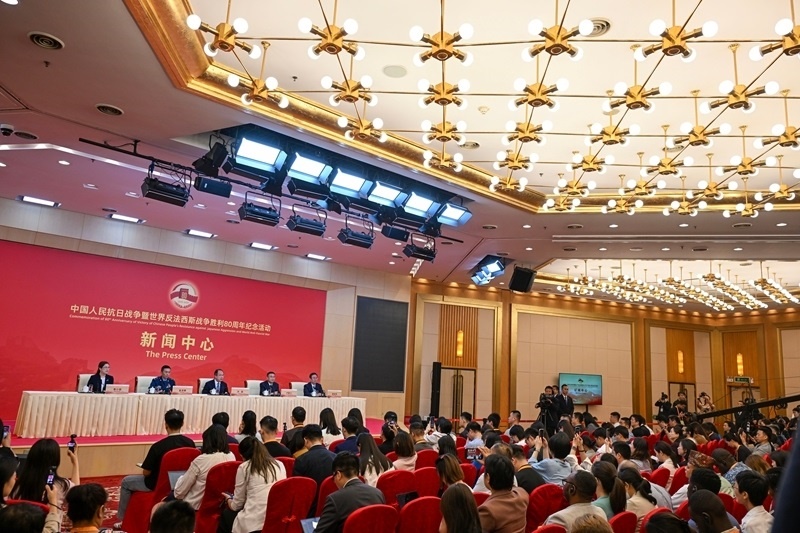 8月28日上午,中國人民抗日戰(zhàn)爭(zhēng)暨世界反法西斯戰(zhàn)爭(zhēng)勝利80周年紀(jì)念活動(dòng)新聞中心舉辦第一場(chǎng)記者招待會(huì),外交部部長(zhǎng)助理洪磊,文化和旅游部副部長(zhǎng)盧映川,閱兵領(lǐng)導(dǎo)小組辦公室副主任、中央軍委聯(lián)合參謀部作戰(zhàn)局少將副局長(zhǎng)吳澤棵,北京市委常委、常務(wù)副市長(zhǎng)夏林茂介紹紀(jì)念活動(dòng)有關(guān)籌備進(jìn)展,并回答記者提問。