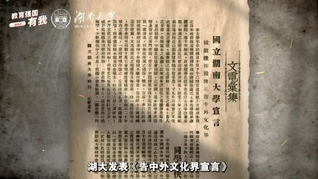 習(xí)近平總書記強(qiáng)調(diào),廣大青少年生逢其時(shí),要賡續(xù)紅色血脈,樹立強(qiáng)國(guó)有我的遠(yuǎn)大志向,做堂堂正正、光榮自豪的中國(guó)人,勇?lián)褡鍙?fù)興的時(shí)代大任。2025年是中國(guó)人民抗日戰(zhàn)爭(zhēng)暨世界反法西斯戰(zhàn)爭(zhēng)勝利80周年,教育部政務(wù)新媒體推出“教育強(qiáng)國(guó),有我!”網(wǎng)絡(luò)主題宣傳活動(dòng)之“青年說·傳承篇”系列,挖掘高校里的紅色記憶,展現(xiàn)青年師生的時(shí)代擔(dān)當(dāng)。今天,跟教育小微通過1個(gè)微視頻和1個(gè)故事,共同回顧湖南大學(xué)師生英勇抗戰(zhàn)的烽火歲月——