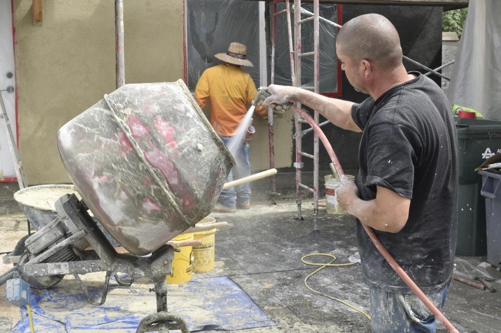 5月7日,建筑工人在美國(guó)加州洛杉磯縣蒙羅維亞一處工地工作。新華社記者高山攝