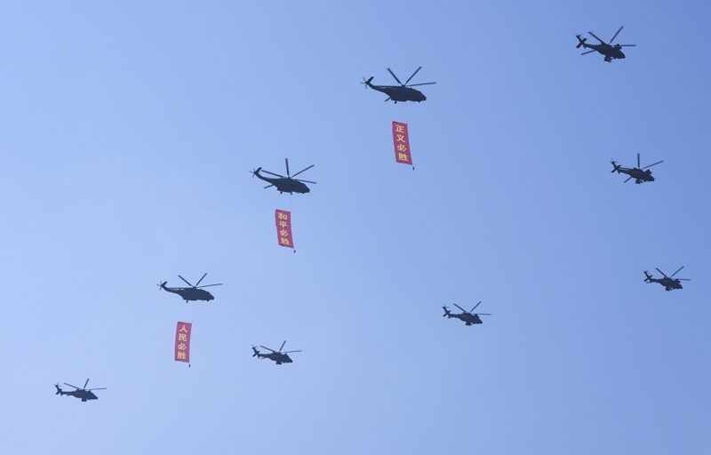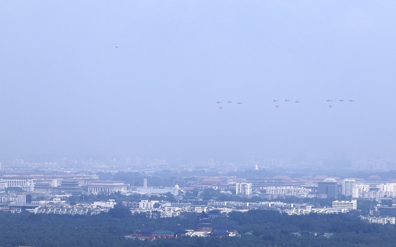9月3日,紀念中國人民抗日戰(zhàn)爭暨世界反法西斯戰(zhàn)爭勝利80周年大會在北京隆重舉行。這是空中護旗梯隊。