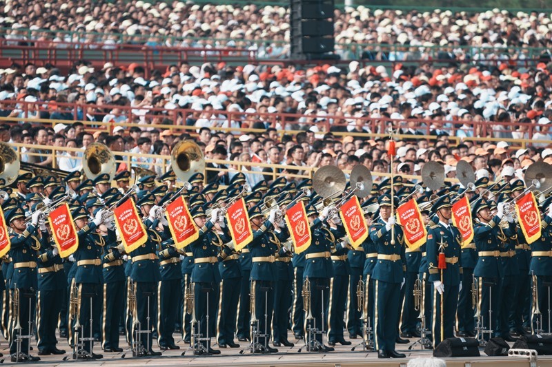 9月3日,紀念中國人民抗日戰(zhàn)爭暨世界反法西斯戰(zhàn)爭勝利80周年大會在北京隆重舉行。這是中國人民解放軍聯(lián)合軍樂團在演奏。