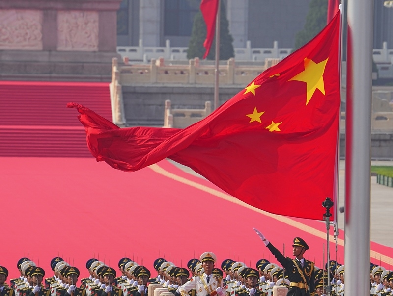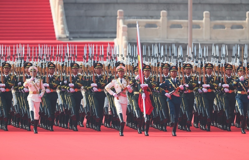 9月3日,紀念中國人民抗日戰(zhàn)爭暨世界反法西斯戰(zhàn)爭勝利80周年大會在北京隆重舉行。這是國旗護衛(wèi)隊官兵護衛(wèi)著五星紅旗行進。