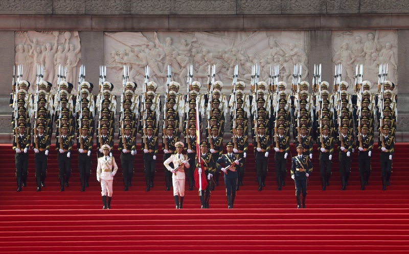 9月3日,紀念中國人民抗日戰(zhàn)爭暨世界反法西斯戰(zhàn)爭勝利80周年大會在北京隆重舉行。這是國旗護衛(wèi)隊官兵護衛(wèi)著五星紅旗,從人民英雄紀念碑行進至廣場北側(cè)升旗區(qū)。