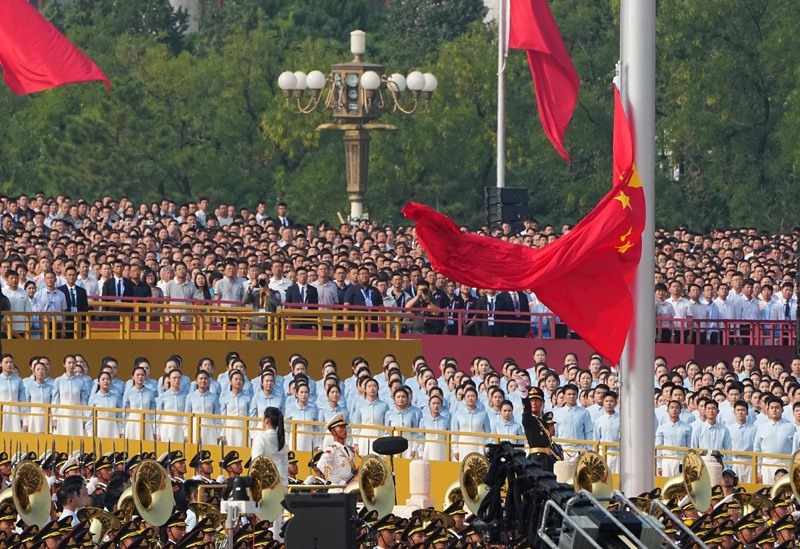 9月3日,紀(jì)念中國(guó)人民抗日戰(zhàn)爭(zhēng)暨世界反法西斯戰(zhàn)爭(zhēng)勝利80周年大會(huì)在北京隆重舉行。這是天安門(mén)廣場(chǎng)舉行隆重的升國(guó)旗儀式。
