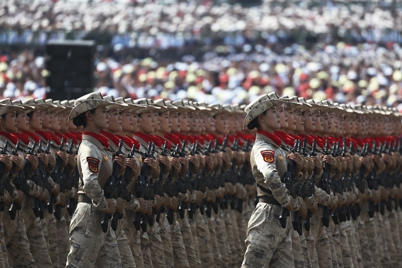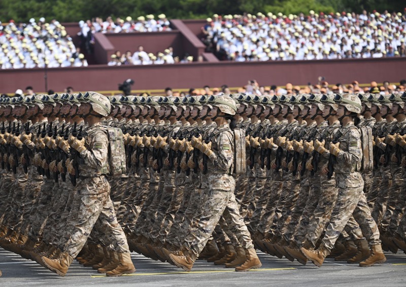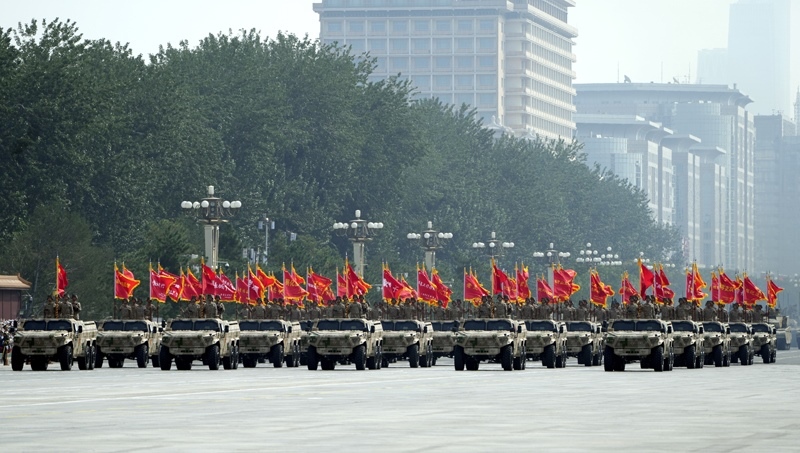 9月3日,紀(jì)念中國人民抗日戰(zhàn)爭暨世界反法西斯戰(zhàn)爭勝利80周年大會在北京隆重舉行。這是民兵方隊(duì)接受檢閱。
