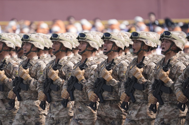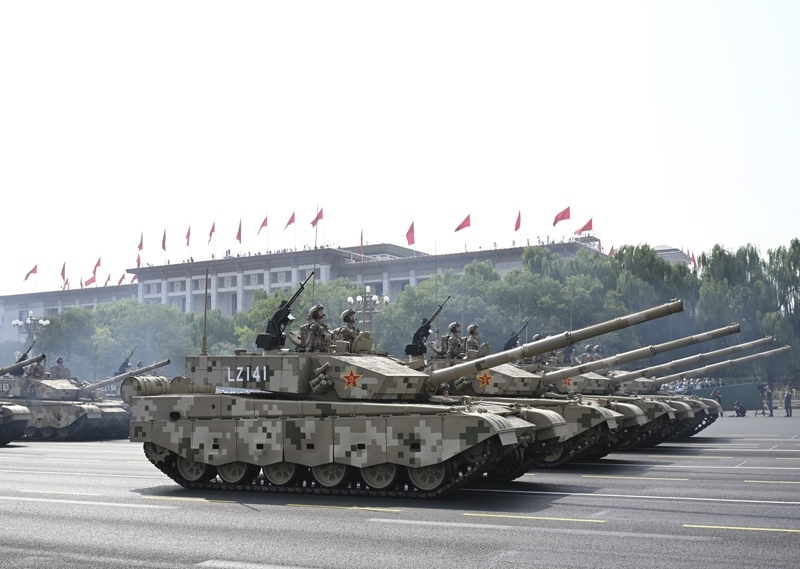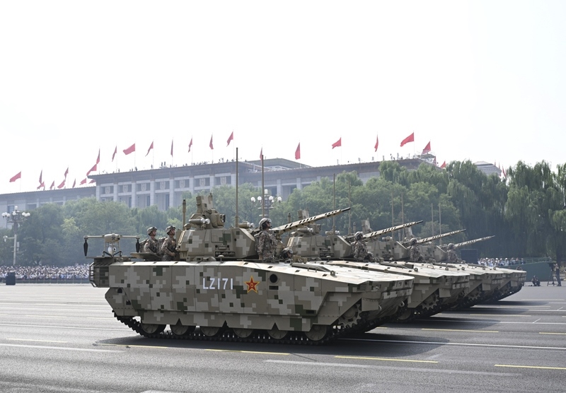 9月3日,紀(jì)念中國人民抗日戰(zhàn)爭暨世界反法西斯戰(zhàn)爭勝利80周年大會在北京隆重舉行。這是地面突擊方隊(duì)接受檢閱。