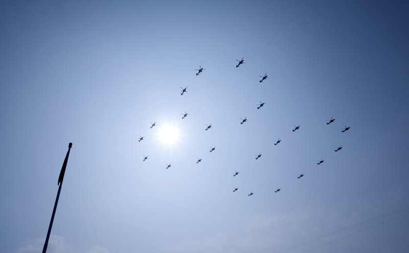 9月3日,紀(jì)念中國人民抗日戰(zhàn)爭暨世界反法西斯戰(zhàn)爭勝利80周年大會在北京隆重舉行。這是空中梯隊(duì)接受檢閱。