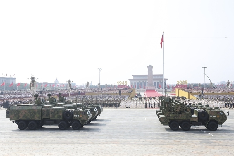 9月3日,紀念中國人民抗日戰(zhàn)爭暨世界反法西斯戰(zhàn)爭勝利80周年大會在北京隆重舉行。這是艦載防空武器方隊接受檢閱。