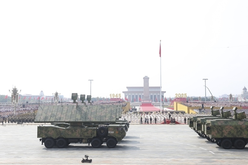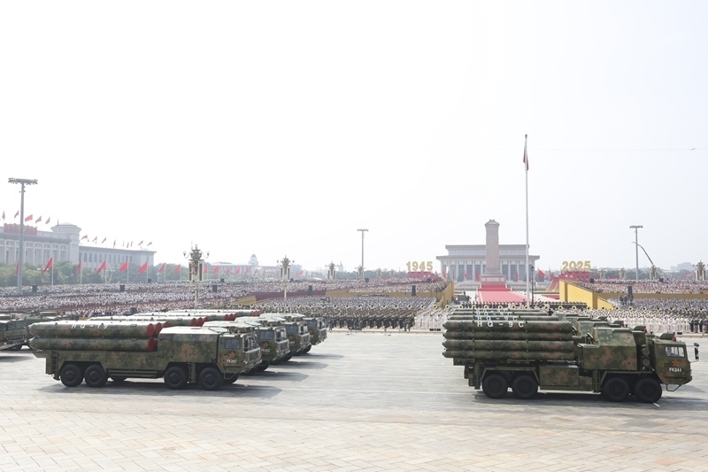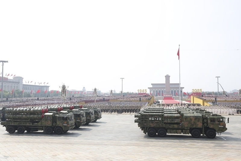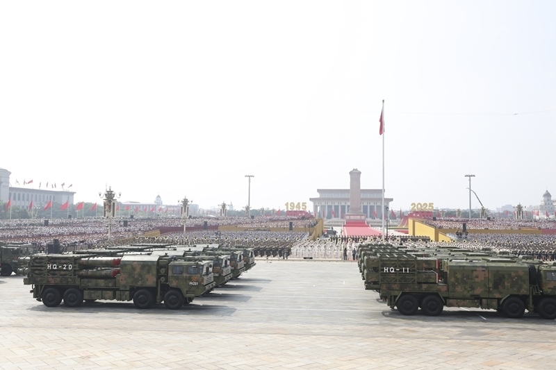 9月3日,紀念中國人民抗日戰(zhàn)爭暨世界反法西斯戰(zhàn)爭勝利80周年大會在北京隆重舉行。這是對空抗擊方隊接受檢閱。