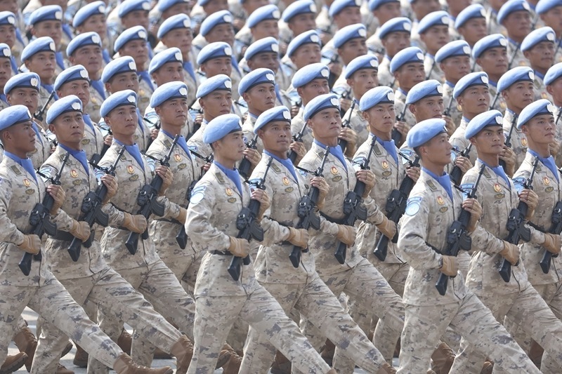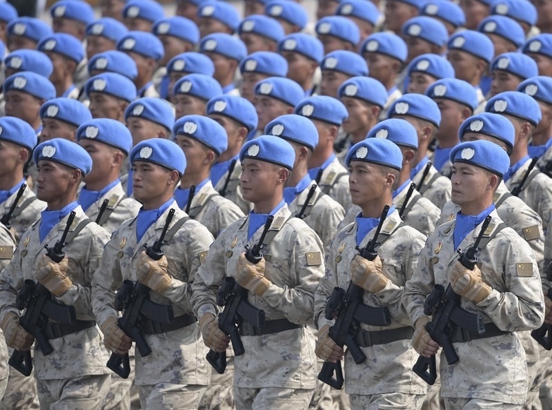 9月3日,紀念中國人民抗日戰(zhàn)爭暨世界反法西斯戰(zhàn)爭勝利80周年大會在北京隆重舉行。這是維和部隊方隊接受檢閱。