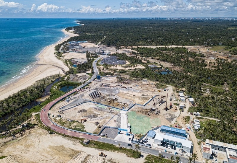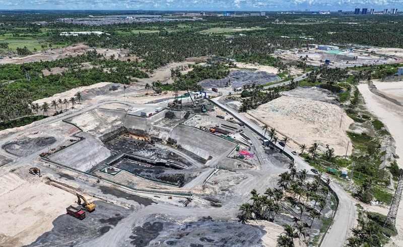 9月5日拍攝的建設中的海南商業(yè)航天發(fā)射場二期項目,遠處是海南商業(yè)航天發(fā)射場(一期)和文昌航天發(fā)射場(無人機照片)。