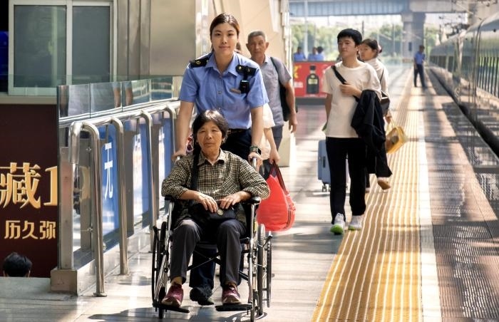 無錫站"太湖明珠"雷鋒服務(wù)站工作人員為重點(diǎn)旅客出行提供幫扶。張博倫 攝