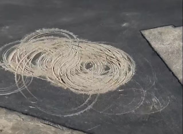 然而,近段時間以來,一些人穿越戈壁荒漠,來到這里玩漂移,留下了一個個刺眼的痕跡。尤其是在“人民”二字中間,漂移痕跡尤為嚴重,從空中俯瞰令人痛心。許多網(wǎng)友直言,這不僅是對戈壁景觀的破壞,更是對歷史和先輩的褻瀆。