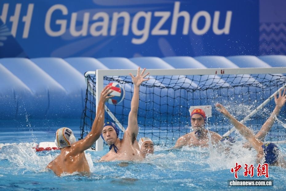 10月27日晚,在廣東廣州舉行的第十五屆全國運動會水球男子組比賽金牌賽中,廣東隊以16比9戰(zhàn)勝上海隊,獲得金牌。圖為上海隊11號運動員蔡宇浩(白帽)在比賽中進攻。