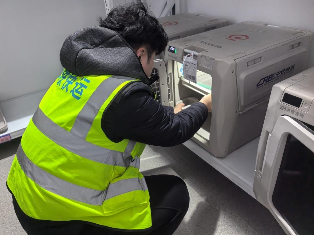 中鐵快運(yùn)太原南站營(yíng)業(yè)部業(yè)務(wù)負(fù)責(zé)人武鑫介紹:“我們自今年10月啟動(dòng)高鐵寵物托運(yùn)服務(wù)試點(diǎn)以來(lái),已經(jīng)托運(yùn)過(guò)寵物貓、寵物狗等。旅客可以在12306官方平臺(tái)或到營(yíng)業(yè)部現(xiàn)場(chǎng)辦理托運(yùn)業(yè)務(wù)。托運(yùn)前,需要提交相關(guān)部門的檢疫證明。工作人員會(huì)對(duì)寵物運(yùn)輸箱和列車環(huán)境進(jìn)行嚴(yán)格消毒。寵物運(yùn)輸箱內(nèi)還帶有攝像頭,主人可以通過(guò)監(jiān)控查看自家寵物的實(shí)時(shí)狀態(tài)。我們配備的工作人員,也會(huì)定時(shí)檢查寵物狀態(tài),提供必要的安撫和飲水?!?/p>