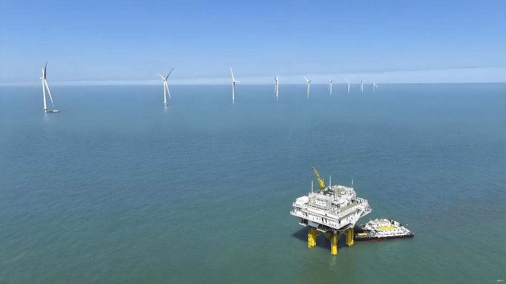 圖為山東省東營(yíng)市的渤中海上風(fēng)電項(xiàng)目。新華社發(fā)