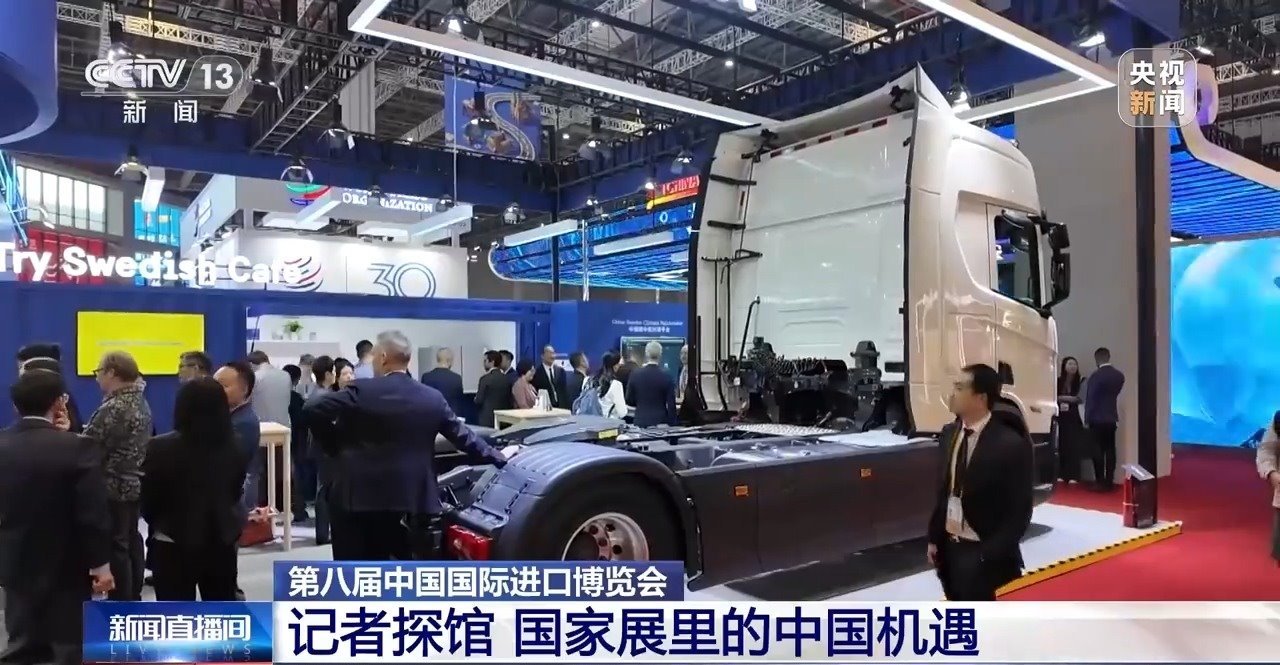 我的AI眼鏡第一時(shí)間就捕捉到了這個(gè)“大塊頭”,放眼望去,整個(gè)國(guó)家展里沒(méi)有比它還大件的展品了。這輛高端重卡車型來(lái)自瑞典,是享有“公路之王”美譽(yù)的瑞典企業(yè)斯堪尼亞帶來(lái)的重型運(yùn)輸領(lǐng)域的最新成果。別看它塊頭大,新技術(shù)賦予了它高效節(jié)能的特點(diǎn),是今年國(guó)家展里最吸睛的展品之一。