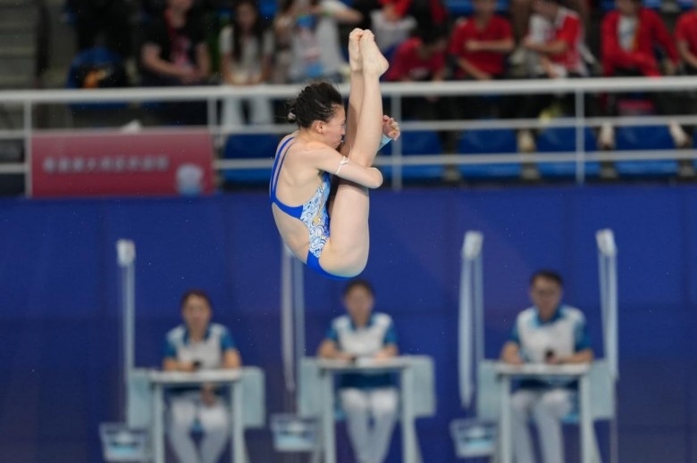 圖為陳芋汐在比賽中,陳城攝/光明圖片。