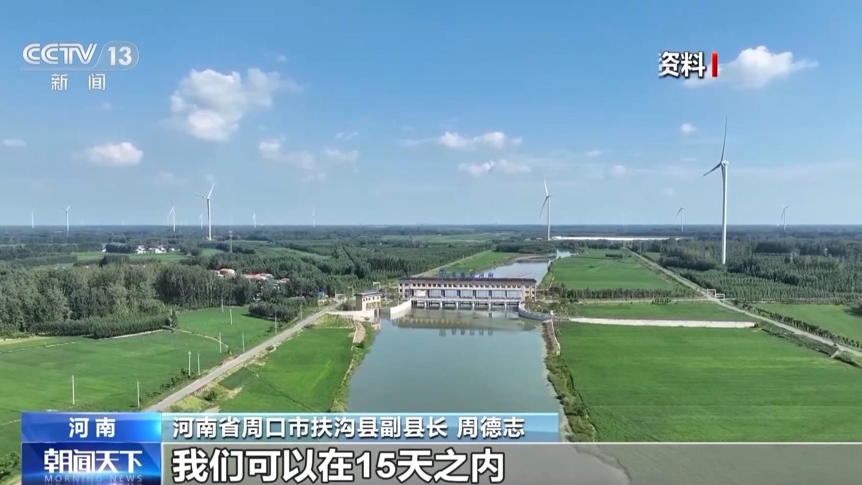 河南省周口市扶溝縣副縣長 周德志:發(fā)生旱情的時候,我們可以在15天之內(nèi),把全縣的干支渠蓄滿水,最高時候可達到7000萬立方米,有效緩解旱情。汛情的時候,我們兩天之內(nèi)可以把田里的水全部排空,真正能做到旱能澆,澇能排。