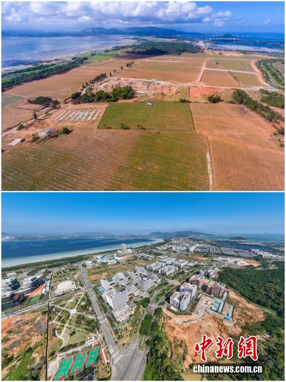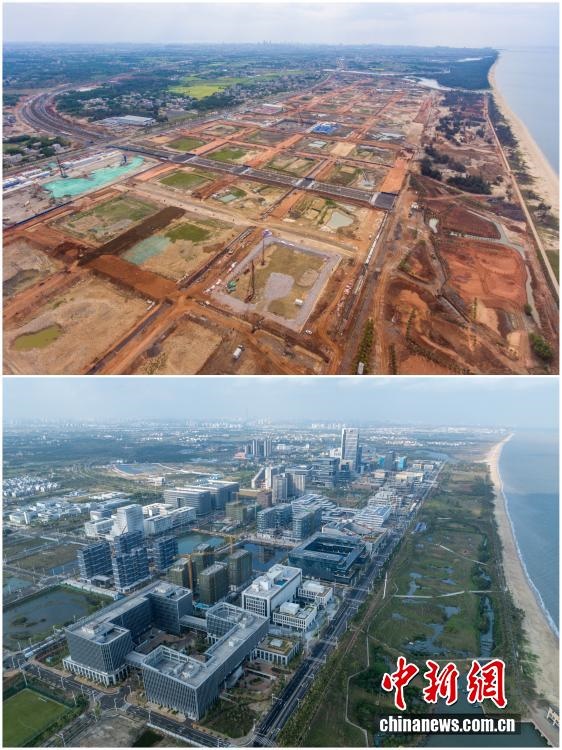 2025年12月18日,海南自由貿(mào)易港正式啟動(dòng)全島封關(guān)。近年來,海南自貿(mào)港建設(shè)在利好政策帶動(dòng)下不斷刷新“自貿(mào)港速度”,一個(gè)個(gè)重大項(xiàng)目、重點(diǎn)園區(qū)拔地而起,直觀呈現(xiàn)海南自貿(mào)港的蓬勃生機(jī)。這里正成為中國(guó)對(duì)外開放的新前沿、互利合作的新熱土和推動(dòng)經(jīng)濟(jì)全球化的新引擎。上資料圖為2020年8月19日俯瞰三亞崖州灣科技城高新區(qū)建設(shè)現(xiàn)場(chǎng),下資料圖為2025年12月9日已初具規(guī)模的三亞崖州灣科技城高新區(qū)。(拼版圖,無人機(jī)照片)
