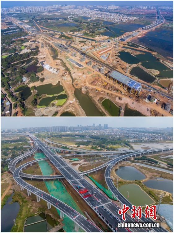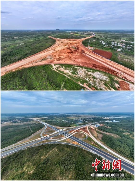 2025年12月18日,海南自由貿(mào)易港正式啟動(dòng)全島封關(guān)。近年來,海南自貿(mào)港建設(shè)在利好政策帶動(dòng)下不斷刷新“自貿(mào)港速度”,一個(gè)個(gè)重大項(xiàng)目、重點(diǎn)園區(qū)拔地而起,直觀呈現(xiàn)海南自貿(mào)港的蓬勃生機(jī)。這里正成為中國(guó)對(duì)外開放的新前沿、互利合作的新熱土和推動(dòng)經(jīng)濟(jì)全球化的新引擎。上資料圖為2021年2月6日正在建設(shè)中的G15沈海高速公路??诙雾?xiàng)目海秀互通,下資料圖為2022年12月28日G15沈海高速公路海口段建成通車。(拼版圖,無人機(jī)照片)
