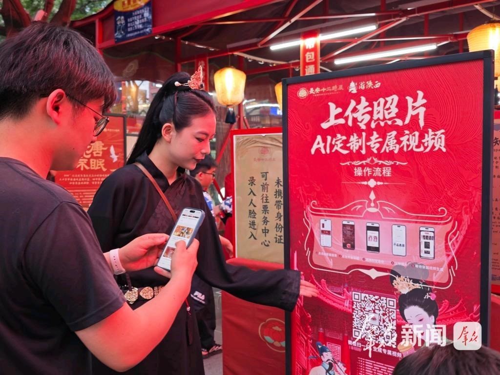 在長安十二時辰主題街區(qū)AI漢服體驗設(shè)備前,游客僅需站立數(shù)秒,系統(tǒng)便通過計算機(jī)視覺生成專屬唐裝形象,背景自動匹配實景拍攝……