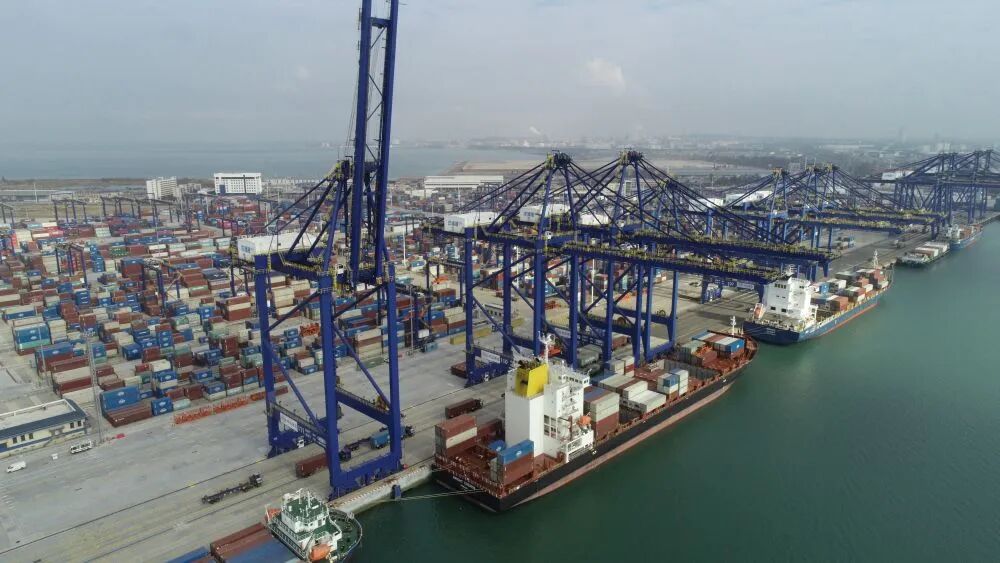 1月13日拍攝的洋浦國際集裝箱碼頭(無人機照片)。新華社記者吳茂輝 攝