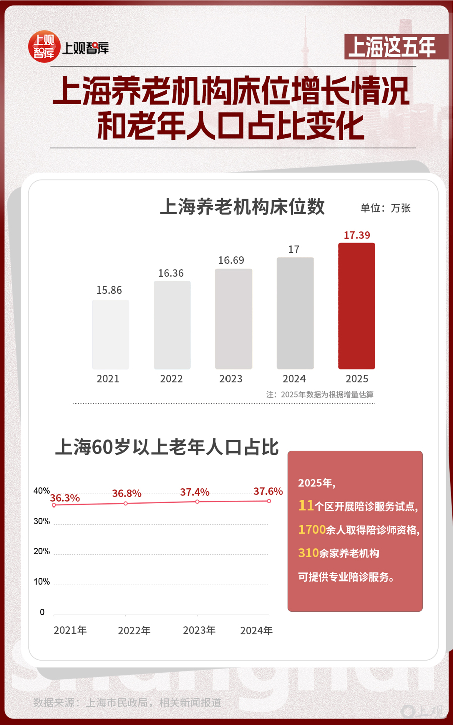 截至2025年3月底,上海市60歲及以上戶籍老年人口達(dá)到518.7萬人,占戶籍總?cè)丝诘?6.2%。上海相關(guān)健康指標(biāo)持續(xù)優(yōu)化,人均期望壽命有望超過84歲,保持發(fā)達(dá)國家水平。
